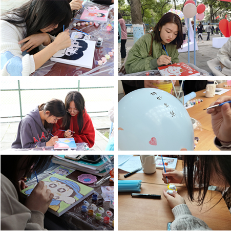 色彩缤纷的气球散落在四周,将活动现场装饰得可爱又灵动。活动中,同学们大胆想象,积极创作,在画板与石膏娃娃上绘制成自己心中所想的样子,释放在学习生活中积攒的压力,调整心态,以画抒情、以画解心。心理知识竞答区域气氛也十分热烈,考题覆盖心理健康教育基本知识和学生在校园生活中可能遇到常见的心理问题。整个活动现场的欢声笑语不断,现场氛围愈发轻松愉快。