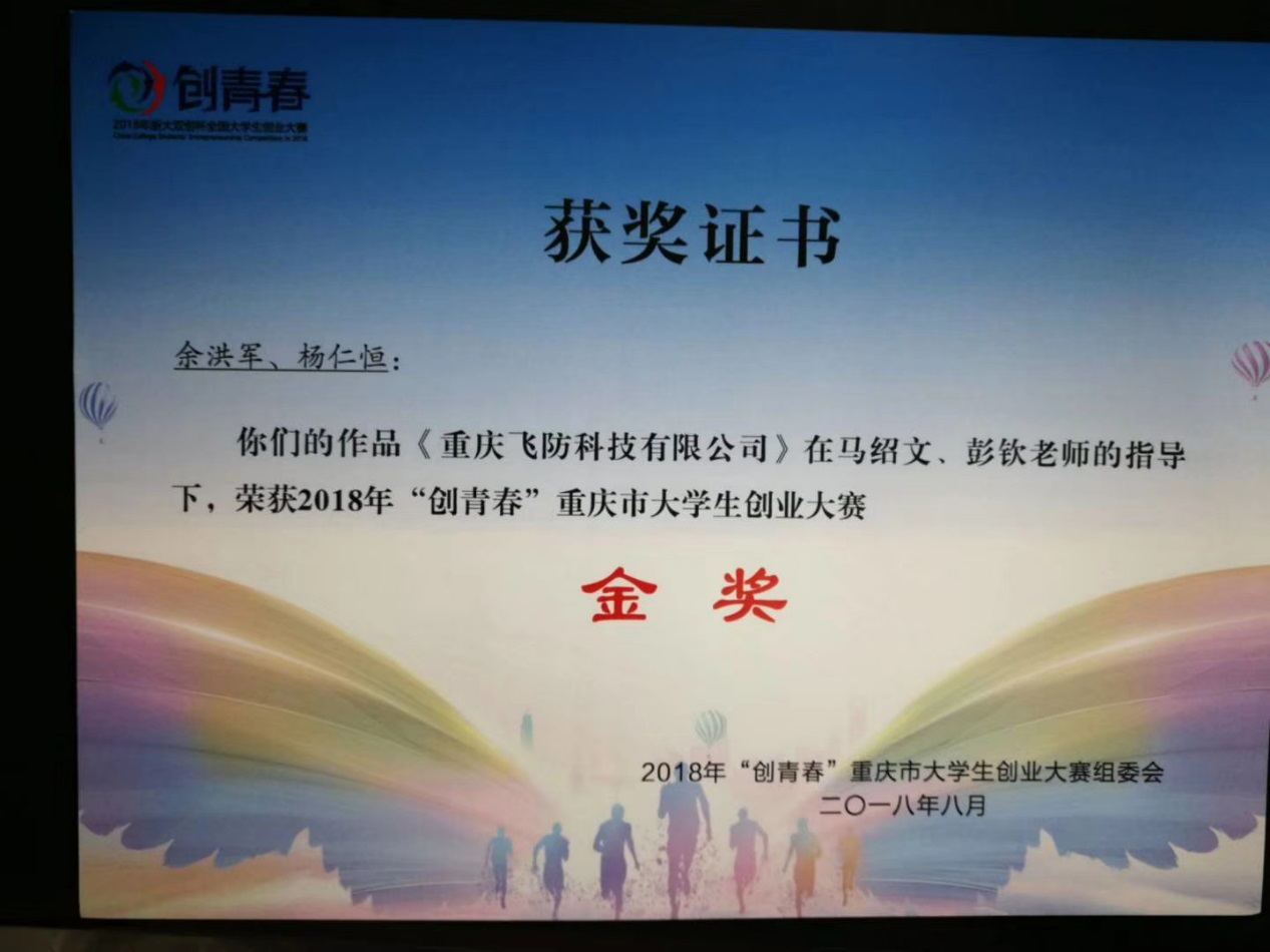 2018年8月获“创青春”重庆市大学生创业大赛金奖。