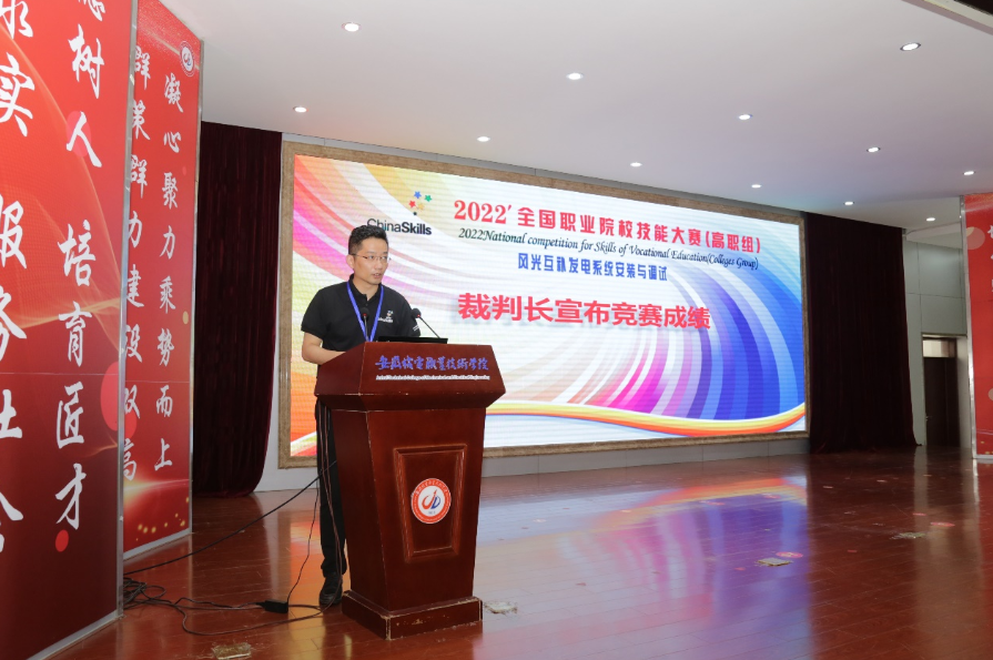 在2022年全国职业院校技能大赛中,郎朗副教授担任高职组风光互补发电系统安装与调试赛项裁判长。大赛举办期间,严格按照大赛制度规定积极开展各项工作,严格执行大赛委员会程序和纪律,利用自身扎实的专业知识,秉承公开公正公平原则,圆满完成大赛的执裁工作,赢得了大赛执委会、承办院校及参赛院校的一致好评和高度赞扬。