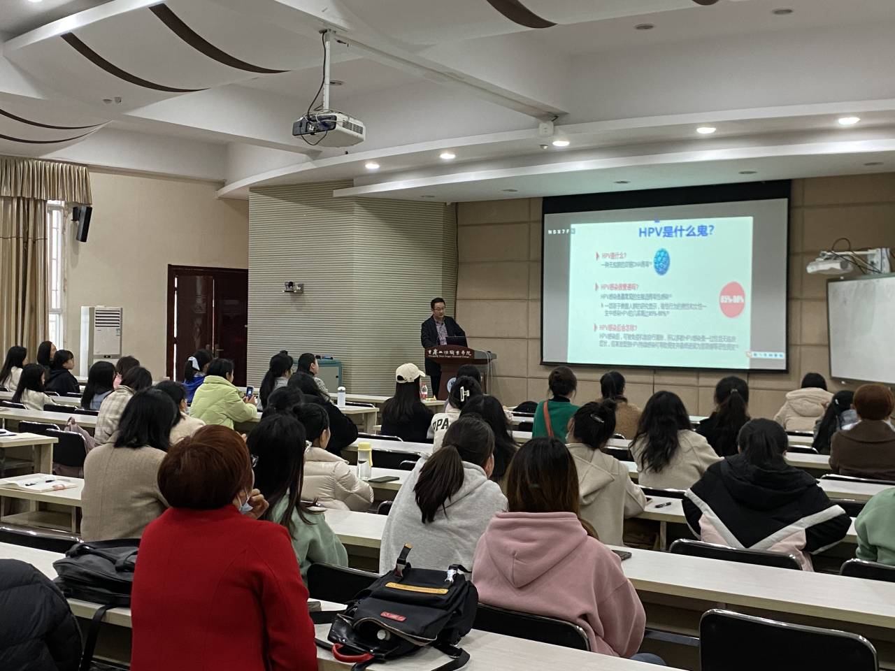 在2023年“三八”国际妇女节来临之际,为关心学院女教职工的健康,进一步提高女教职工自我保护意识和健康生活理念,3月7日,学院工会特邀重庆大学附属肿瘤医院妇科肿瘤中心副主任医师龙行涛博士在博雅楼207开展“可以预防宫颈癌疫苗---HPV疫苗知多少?”女性健康知识讲座。