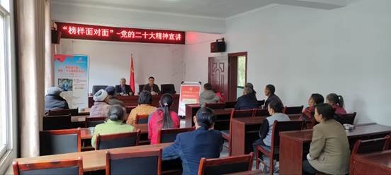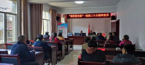 宣讲过程中,康学良同志从深刻领会党的二十大的主题和主要成果、深刻领会过去五年和新时代十年的伟大变革、深刻领会开辟马克思主义中国化时代化新境界、深刻领会中国式现代化的科学内涵、深刻领会全面建设社会主义现代化国家的目标任务、深刻领会坚持党的全面领导和全面从严治党的重大部署、全面深入学习宣传贯彻党的二十大精神等方面入手,系统阐述了党的二十大精神内涵,并结合自己驻村扶贫的亲身经历和经济社会发展现状,向当地村民介绍党的方针政策,引导大家感党恩、听党话、跟党走。