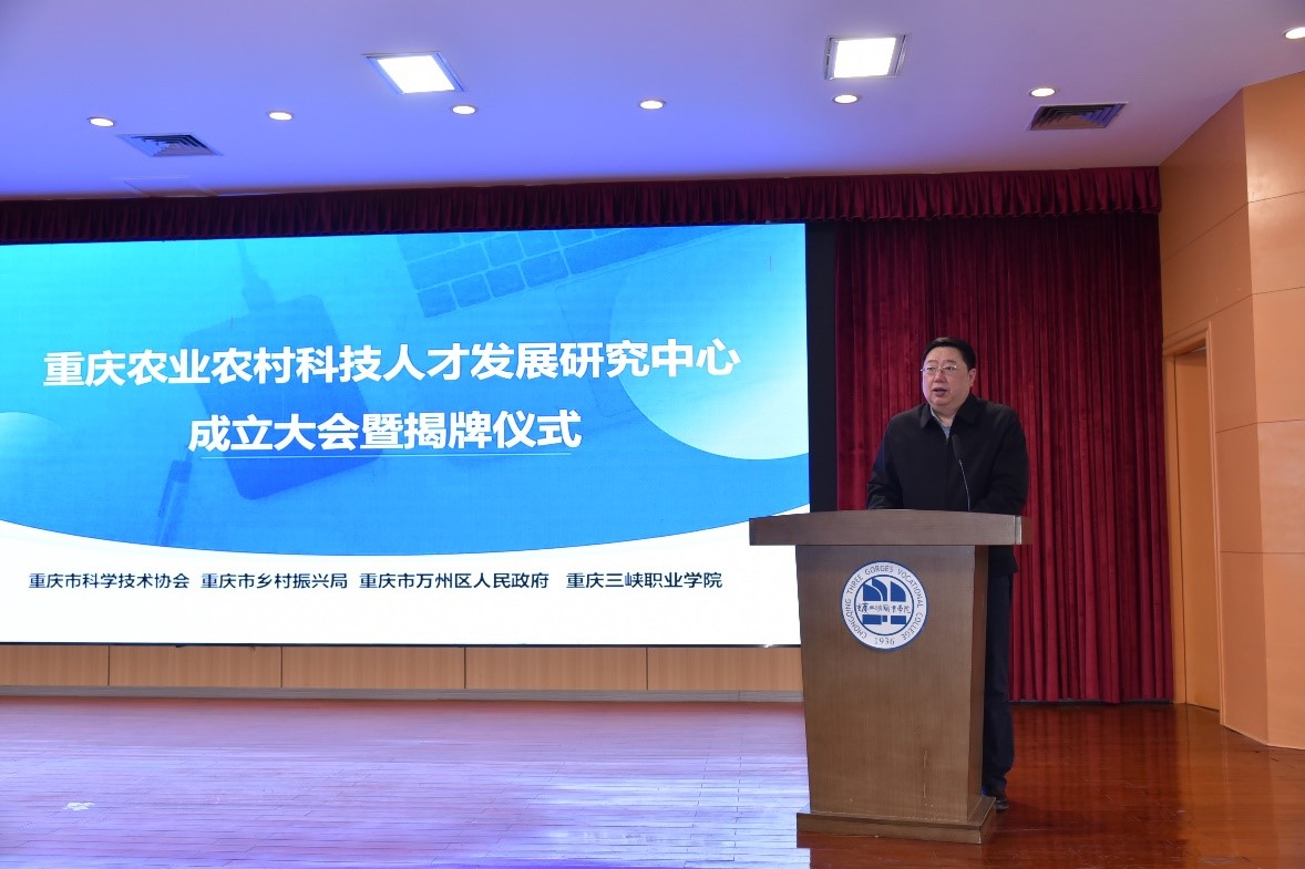 万州区委常委、副区长王建平在致辞中指出,在全市深入学习贯彻习近平总书记关于“三农”工作的重要论述和中央农村工作会议精神,立足实际推进农业现代化的关键时期,重庆农业农村科技人才发展研究中心的成立是以实际行动落实习近平总书记《加快建设农业强国 推进农业农村现代化》的重要举措,是推动重庆市高端人才与现代农业的深度对接,也是金年会app切实服务地方经济高质量发展的新举措,希望中心整合力量、集中攻坚,充分发挥人才第一资源的支撑作用,打造服务重庆农业农村现代化发展、全面实施乡村振兴战略的理论研究高地和实践交流平台。