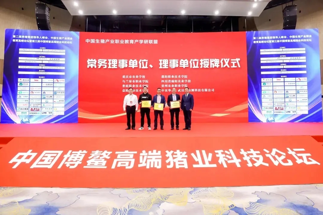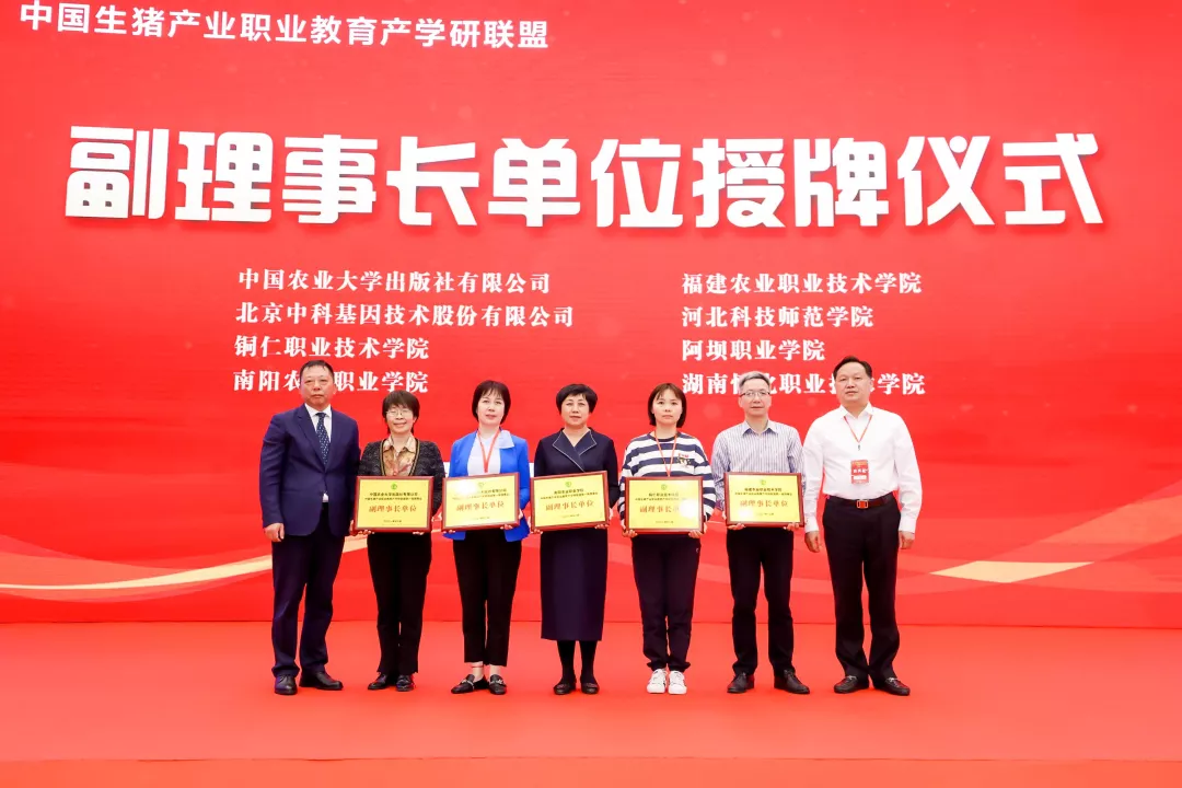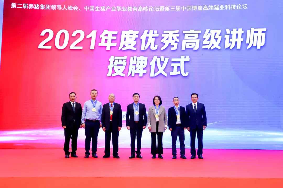 学院党委书记陈章受邀为中国博鳌高端猪业科技论坛组委会2021优秀高级讲师和中国生猪产业职业教育产学研联盟新晋副理事长单位、联盟新晋常务理事单位和理事单位授牌。