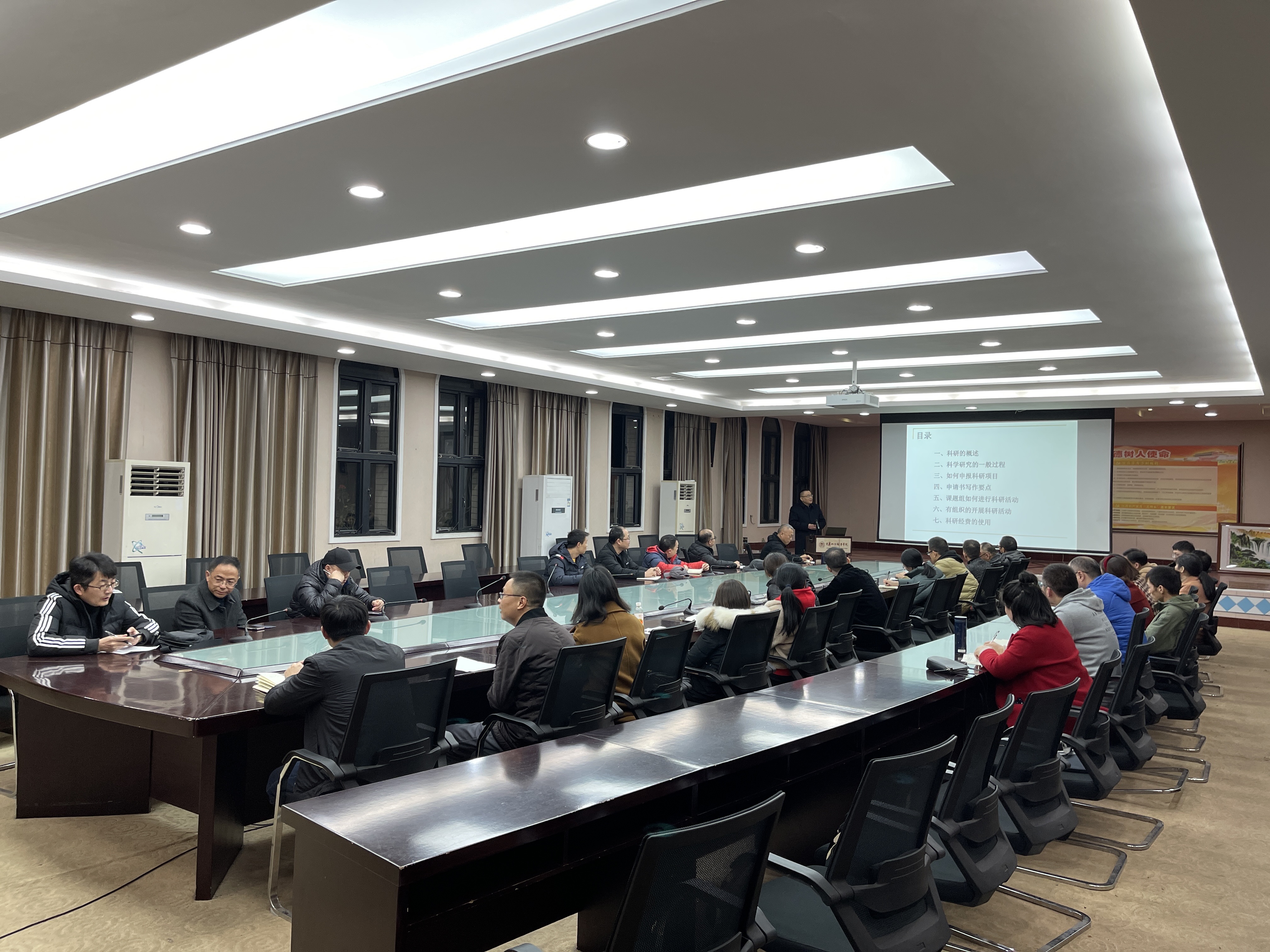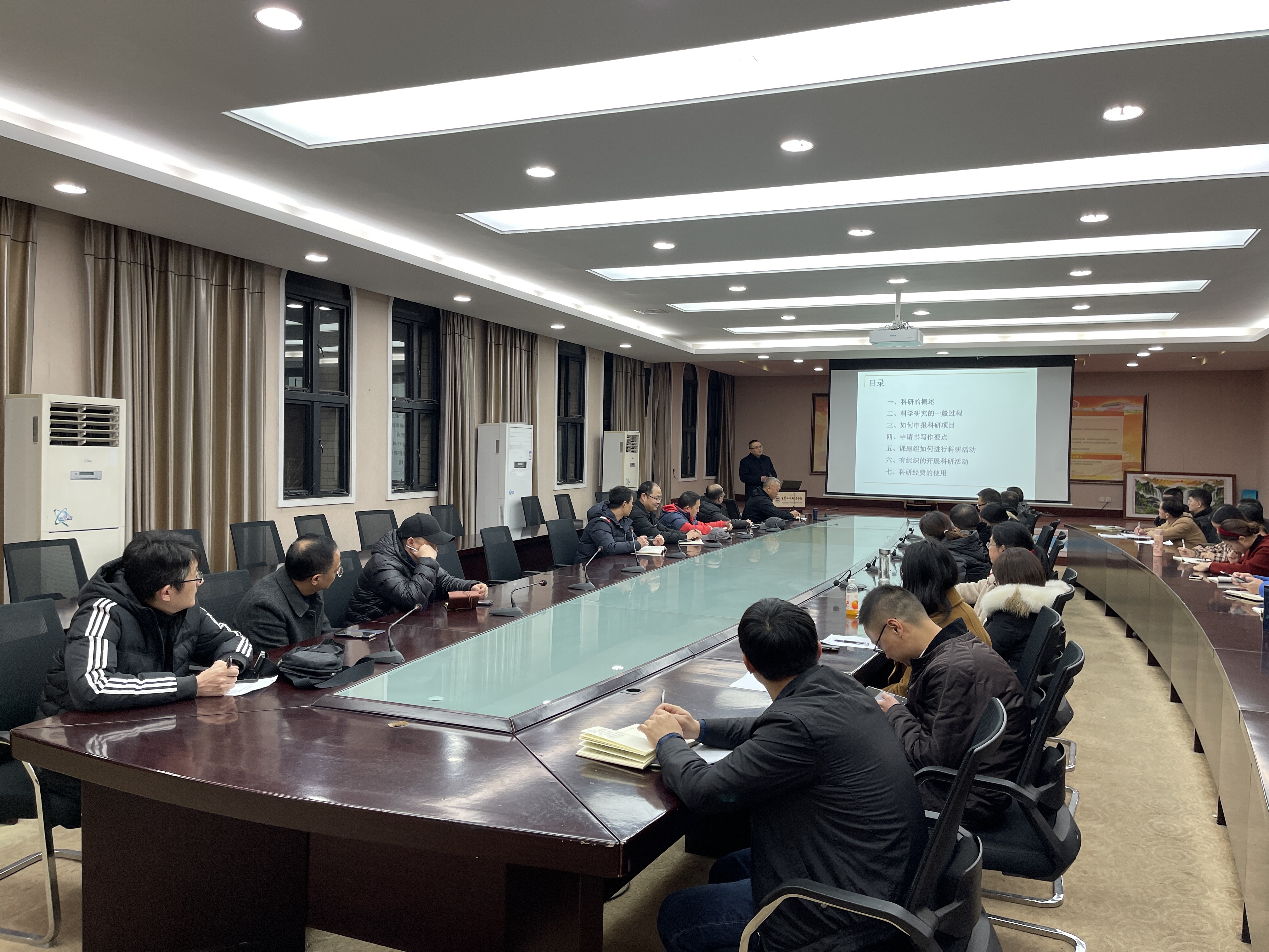 熊江教授就当前职业学校的教科研现状,科研项目的申报,科研论文课题的选题、申报、构架、素材积累、研究方法以及论文撰写等方面进行了详细讲解。