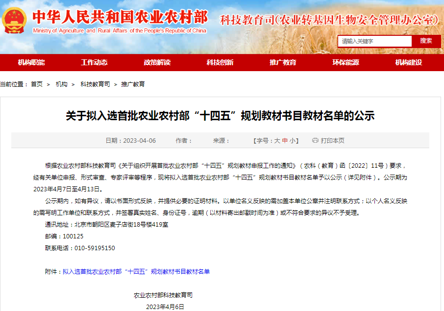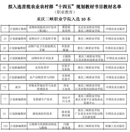 近日,农业农村部科技教育司公布了农业农村部“十四五”规划教材书目教材名单,金年会app10本教材成功入选,其中动物科技学院入选9本,取得了学院教材建设的新突破。