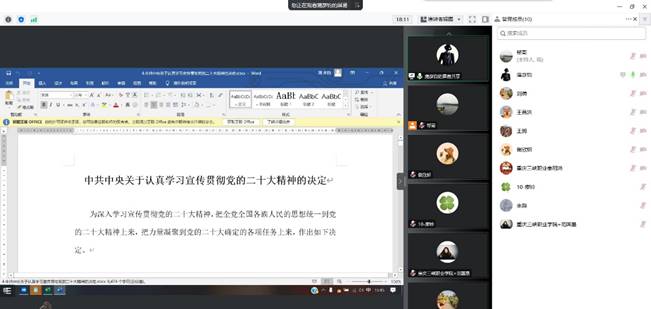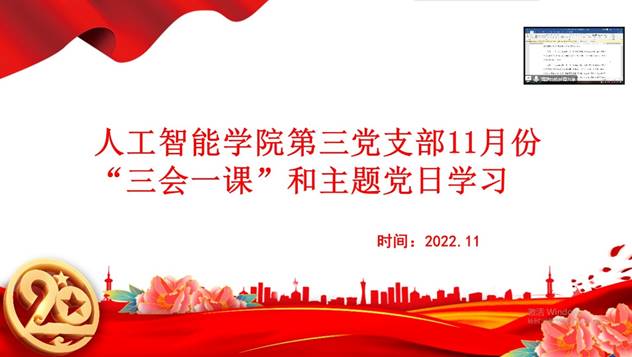 2022年11月30日下午3:30,人工智能学院党总支第三党支部在腾讯会议开展了11月“三会一课”及主题党日学习。会议由支部书记吴勇帑主持,支部10名教师党员参加。