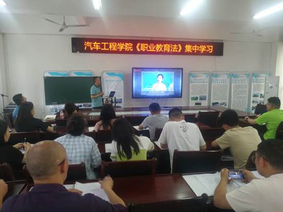 为深入贯彻落实全国职业教育大会精神,做好新修订《中华人民共和国职业教育法》宣传工作,提升职业教育活动周的宣传效果,汽车工程学院积极响应号召,于5月24日在奥训楼403组织《中华人民共和国职业教育法》集中学习。学习会由汽车工程学院党总支书记、院长夏平主持,汽车工程学院全体教师参与。