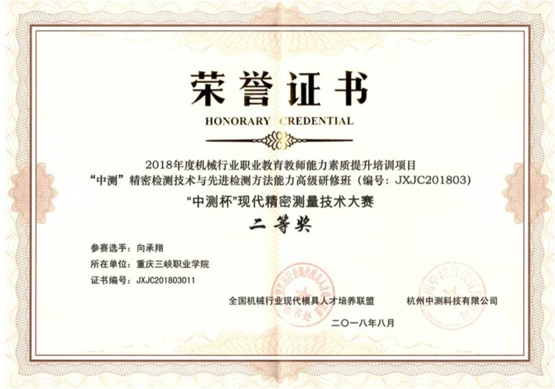 重庆市第11届复杂部件数控多轴联动加工技术团体二等奖