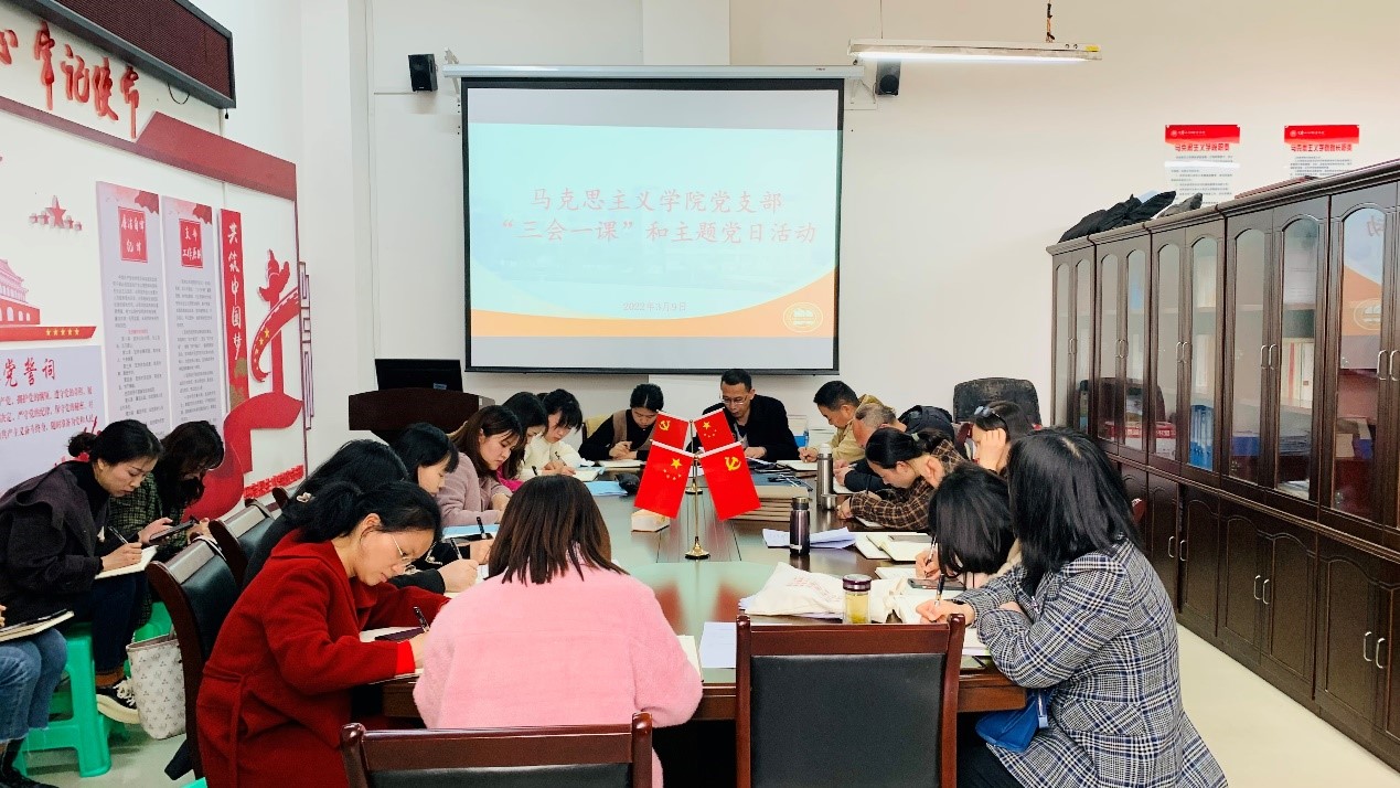 3月1日下午,马克思主义学院直属党支部在奥训楼403会议室举行“三会一课”学习活动,马克思学院全体党员参加此次学习活动,会议由党支部副书记丁翠娟主持。会上集中学习了中国共产党第二十次全国代表大会关于十九届中央纪律检查委员会工作报告的决议、习近平在参加党的二十大广西代表团讨论时的重要讲话、习近平在二十届中共中央政治局常委同中外记者见面时的重要讲话、习近平主持中国共产党第二十次全国代表大会大会闭幕时的重...