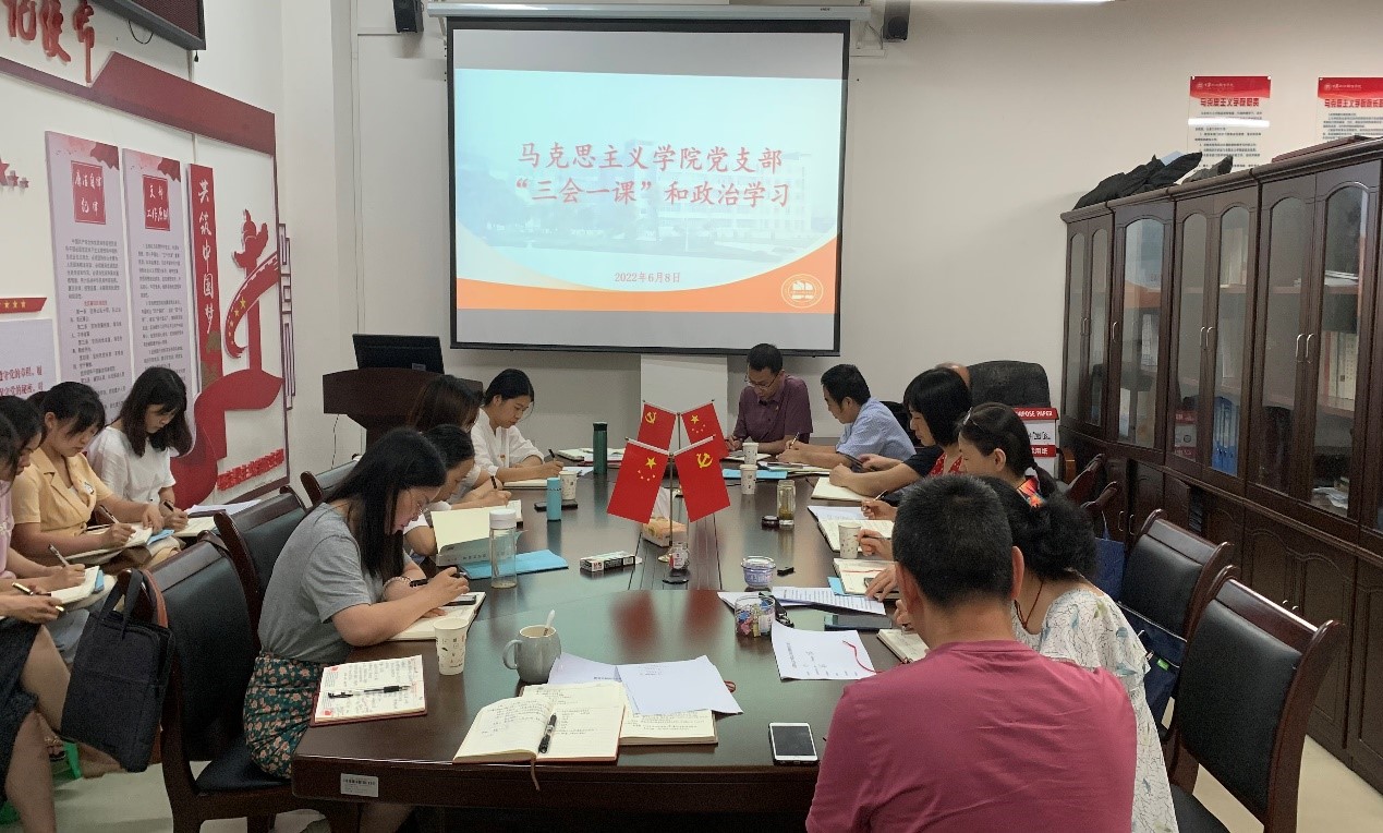 6月8日下午,马克思主义学院党支部在马院办公室开展政治理论学习。会议由党支部副书记丁翠娟主持。会上,集中学习了《习近平总书记在庆祝中国共产主义青年团成立100周年大会上的讲话精神》、《习近平总书记在中共中央政治局第三十九次集体学习时重要讲话精神》、《习近平总书记给南京大学留学归国青年学者的回信》、《习近平总书记致首届大国工匠创新交流大会的贺信》、《正确认识和把握我国发展重大理论和实践问题》、《中共.....